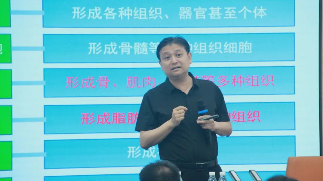 在董事长助理付宇辰博士的主持下,“开学第一课” 正式进入第一阶段。深圳细胞谷董事长史渊源教授以“细胞治疗的未来与你们的职业舞台”为主题,为师生们带来了一场精彩纷呈的讲座。史渊源教授从细胞治疗的背景出发,深入剖析了当前细胞治疗行业的现状,详细讲解了病毒载体的选择要点,并对未来细胞治疗行业的发展趋势进行了科学展望。他强调,深圳细胞谷将在细胞与基因治疗领域持续发挥核心且先进的技术优势,运用成熟的定向人才培养模式,不断深化与深职大在产教融合等方面的交流与合作。双方将协同探索更多交叉创新点,加速细胞与基因治疗行业的人才培育进程。随后的互动环节,学生们踊跃提问,史渊源教授对学生们提出的疑问一一进行了详细、专业地解答,激发了学生们对细胞治疗行业的浓厚兴趣与学习热情