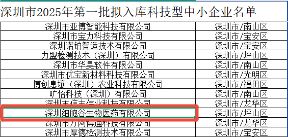 近日,深圳市工业和信息化局公布2025年首批科技型中小企业入库名单,深圳细胞谷连续三年获评。科技型中小企业是国家创新体系的重要基石,以技术密集、创新活跃和快速响应市场著称,是产业升级与经济高质量发展的核心引擎。